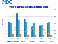 IDC最新發(fā)布的《全球打印外設市場季度跟蹤報告(2023年第四季度)》顯示,2023年第四季度,中國打印外設市場出貨量為462.5萬臺,同比下降29.0%,環(huán)比增加24.2%。其中噴... [詳細]