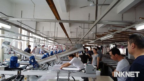 會(huì)后,主辦單位特意安排與會(huì)人員參觀了青島美迪雅服裝有限公司和寧波市鄞州新玲印花廠的全自動(dòng)橢圓印花機(jī)生產(chǎn)線,在生產(chǎn)現(xiàn)場看到,一條生產(chǎn)線只需2~3名工人即可完成全套印花工序,大大提高了生產(chǎn)效率,節(jié)省了勞動(dòng)力,也使與會(huì)者對(duì)全自動(dòng)橢圓印花機(jī)生產(chǎn)線有了更加直觀地了解。