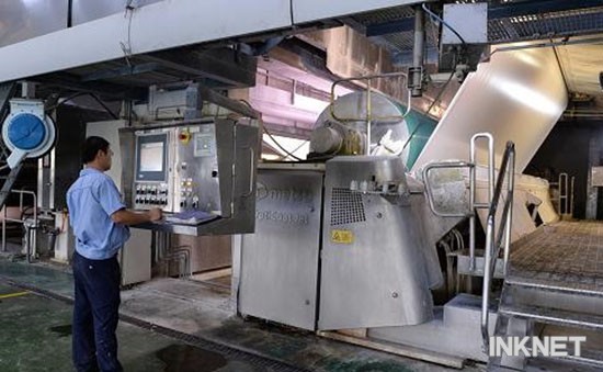 員工在操作全電腦化的紙生產(chǎn)設(shè)備