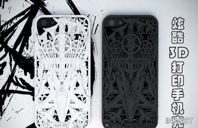 以地獄為背景,山羊頭骨,五角星大道,處處彰顯著撒旦邪惡氣氛,這款手機(jī)殼是打印在堅(jiān)固而有彈性的塑料,可以選擇各種顏色。圖源:shapeways.com