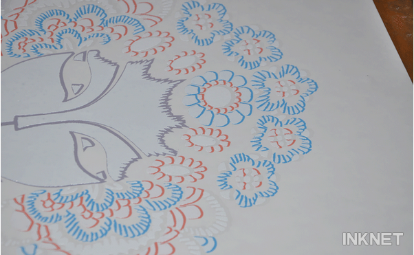 熱固油墨和膠漿的優(yōu)缺點: 熱固油墨不會干版,普通工人可以馬上上手,不需要熟練工;油墨可以過目數(shù)比較細的版,印刷出來的燙畫邊緣比較整齊; 但油墨的成本比膠漿要高很多,彈力及遮蓋力不如膠漿好。但膠漿容易干版,刮版需要熟練工。