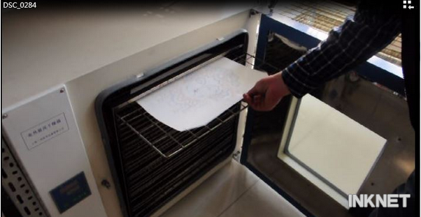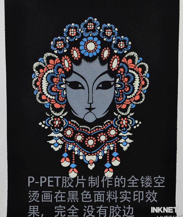 如果用熱固油墨,對于大面積的圖案,不需要灑熱融粉,烘干后(熱固油墨的烘干有兩個溫度,一個是固化,一個是塑化, 一定要在固化的溫度下烘干)直接轉(zhuǎn)印即可。對于比較細碎的圖案,最好能灑熱融粉,提高粘貼牢度。