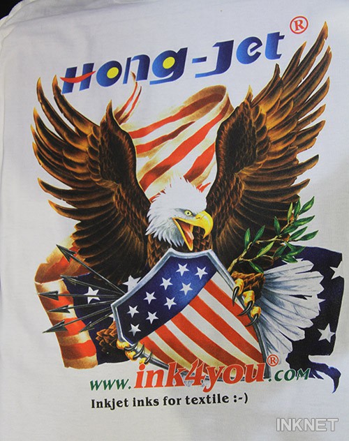 2015上海廣告展,鴻盛數(shù)碼還現(xiàn)場展示了應(yīng)用“捷特絲®”三代紡織涂料墨水打印T恤方案。“捷特絲®”三代紡織涂料墨水是一款基于納米顏料、完全符合噴墨印染機(jī)械生產(chǎn)方式的專業(yè)的數(shù)碼印花墨水。此款墨水分為彩色和黑色兩種,白色墨水屬國內(nèi)首創(chuàng),打印深色衣物時(shí)結(jié)合白色墨水打底使用,可使圖案突出、對比清晰,色彩明艷,真正達(dá)到圖案對服裝的點(diǎn)綴作用,避免了深色衣物打印圖案的模糊現(xiàn)象。展會(huì)現(xiàn)場,“捷特絲®”三代紡織涂料墨水配合HJ-8495平板數(shù)碼印花機(jī)直噴純棉T恤、裁片等織物印花,色彩靚麗、清晰自然的打印效果吸引了眾多追求高品質(zhì)、個(gè)性化的參展觀眾。