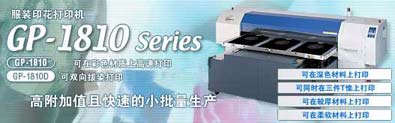 本長野縣東御市的mimaki公司新開發(fā)了服裝用噴墨印花設(shè)備新產(chǎn)品gp-1810d。該產(chǎn)品可直接在面料上打樣印花。對深色素材的t恤衫等可用拔染液脫去底色實現(xiàn)暈色染色效果??赏瑫r印制3件t恤,用專用的rip也可印制文字。使用不影響透氣性的印花用顏料。無須制版接到訂單可立即生產(chǎn)。