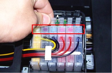 其次,在墨盒與噴頭進(jìn)墨口之間是依靠一個橡膠密封圈保證墨盒與噴嘴的密封,保證墨水不能滲出。長期使用或墨盒的多次拔除都會使密封圈老化,密封效果變差,導(dǎo)致墨水從結(jié)合部滲出,這樣就會使墨水在噴頭上堆積并混合,造成底部墨水的混色,直接的結(jié)果就是打印圖稿時變色,需要打印多張圖稿后顏色才能恢復(fù)正常。這一情況也會導(dǎo)致墨水的浪費(fèi)和打印機(jī)廢墨量的增加。