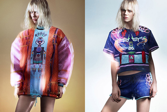 在本次第二個膠囊系列的發(fā)布會上,Katrantzou表示,自己作為80后出生的孩子,專門為這次設計回顧了1988年的首爾奧運會和80年代的健美操課,試圖從中找到一些靈感。“我們開始考慮用到這類符號,并且把它們?nèi)谌氲桨⒌线_斯的風格當中,”Katrantzou說道:“像網(wǎng)球裙、潛水服和田徑衣這種廓形,如果加入了新的元素符號,我覺得那樣子一定會很有趣。”