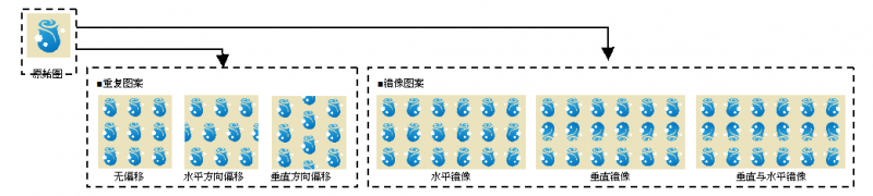通過對小圖像反復(fù)實(shí)施無縫自動排列,可創(chuàng)建一個(gè)較大圖像的重復(fù)設(shè)計(jì)。有效的重復(fù)圖案和鏡像圖案有助于設(shè)計(jì)的完成。