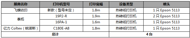 共統(tǒng)計(jì)Epson 5113噴頭設(shè)備4臺(tái)。