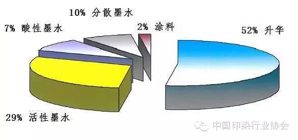 所謂染料墨水是由水溶性或溶劑性的活性,分散,酸性染料調(diào)配而成,染料能夠完全溶解于水或溶劑中,過濾后的染料墨水不含顆粒性成分,故不容易造成噴頭的堵塞。染料墨水的最大特點是色域非常廣,色彩艷麗。且染料成分及發(fā)色機理與傳統(tǒng)印花最接近,所以印花效果(滲透,手感,色牢度等)與傳統(tǒng)印花最為接近,該工藝面料適用面廣,棉、毛、絲、麻、滌綸、錦綸等纖維面料均可使用相應(yīng)染料墨水進行印花。目前該工藝已成為數(shù)碼印花的主流發(fā)展方向。本文也將結(jié)合該工藝進行詳細介紹。以上3種工藝在數(shù)碼印花市場所占份額參見(圖5)。