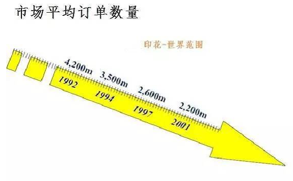 圖13展示了近年來市場平均訂單長度的變化趨勢,由此可以預(yù)測未來印花市場,產(chǎn)能已不應(yīng)再是廠家擔(dān)心的主要因素,如何快速滿足客戶的訂單要求才是廠家的制勝之道。而數(shù)碼印花因省略了打樣制版的時間,且對起印數(shù)量無限制,因此在面對今后市場主流訂單時(3000米~5000米),數(shù)碼印花相對于傳統(tǒng)印花會顯示出越來越多的優(yōu)勢。