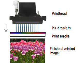 噴墨技術(shù)不需要設(shè)備與印刷表面接觸,利用小墨滴幫助直接印刷。由于此技術(shù)能夠進(jìn)行非接觸印刷,所以可應(yīng)用于各種介質(zhì),如今正推行到從一般用途到產(chǎn)業(yè)使用等廣泛領(lǐng)域。噴墨打印頭和掃描機(jī)構(gòu)相結(jié)合的簡(jiǎn)單結(jié)構(gòu)具有降低設(shè)備成本的優(yōu)點(diǎn)。此外,由于不需要制版,噴墨打印機(jī)與需要固定制版等(如絲網(wǎng)印刷)傳統(tǒng)印花系統(tǒng)相比,大大節(jié)省了印花準(zhǔn)備時(shí)間。