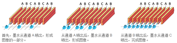 柯尼卡美能達(dá)的按需供墨壓電式打印頭使用節(jié)能的 3 周期驅(qū)動(dòng)技術(shù)。此技術(shù)將噴嘴分成 3 組分別進(jìn)行定時(shí)噴墨控制。由于此方法采用高噴嘴密度結(jié)構(gòu),所以在開發(fā)高圖像品質(zhì)噴墨打印頭方面非常有效。