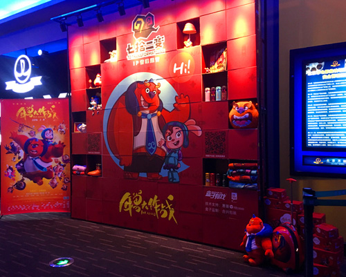 原來(lái)這又是盒子有戲傳媒攜手年獸電影IP運(yùn)營(yíng)管理公司七拾二變玩出的新戲法,將電影與其衍生品通過(guò)展示箱墻完美結(jié)合在一起,為《年獸大作戰(zhàn)》的首映禮平添許多樂(lè)趣。