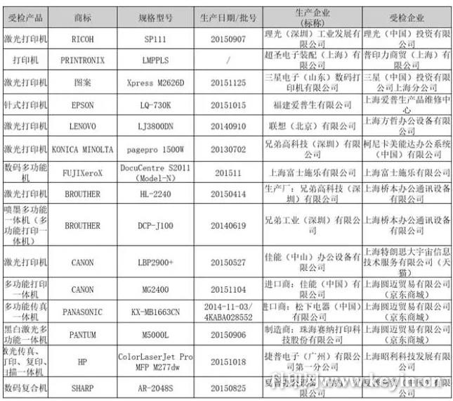 這次抽查依據(jù)國標(biāo)GB4943.1-2011《信息技術(shù)設(shè)備安全第1部分:通用要求》;GB21521-2014《復(fù)印機(jī)、打印機(jī)和傳真機(jī)能效限定值及能效等級》;GB9254-2008《信息技術(shù)設(shè)備的無線電騷擾限值和測量方法》;GB17625.1-2012《電磁兼容限值諧波電流發(fā)射限值(設(shè)備每相輸入電流≤16A)》;GB/T17974-2000《臺式噴墨打印機(jī)通用規(guī)范》;GB/T17540-1998《臺式激光打印機(jī)通用規(guī)范》;GB/T9314-2011《串行擊打式點陣打印機(jī)通用技術(shù)條件》和《復(fù)印機(jī)、打印機(jī)和傳真機(jī)能源效率標(biāo)識實施規(guī)則》。