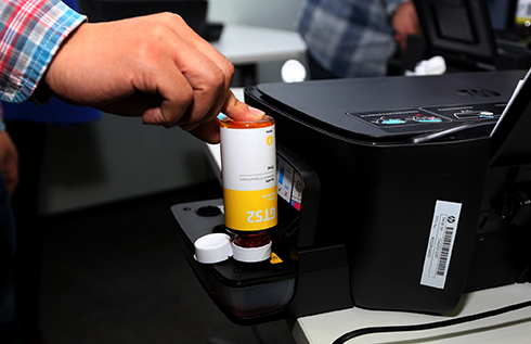 為解決加墨時的不便,惠普通過創(chuàng)新的防濺漏加墨設(shè)計3——360度無濺漏的“密封魔術(shù)瓶”,讓用戶的加墨過程清潔簡便。用戶只需將墨水瓶插入墨倉,無需任何擠壓即可實現(xiàn)加墨,并能通過半透明的墨倉輕松監(jiān)測墨水余量。