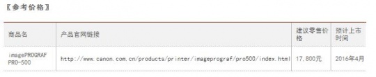 2016年3月22日,佳能(中國)有限公司推出A2幅面專業(yè)照片噴墨打印機(jī)新品imagePROGRAF PRO-500。此次推出的新品集佳能多項(xiàng)前沿噴墨打印技術(shù)于一身,配備了LUCIA PRO 12色獨(dú)立式墨水系統(tǒng)、新型打印頭以及L-COA PRO新型影像處理引擎,同時(shí)完善升級了打印流程和操作管理,力求以精湛細(xì)膩的輸出效果和高生產(chǎn)力表現(xiàn),滿足影樓后期、廣告設(shè)計(jì)公司、藝術(shù)院校、專業(yè)攝影師等影像領(lǐng)域用戶專業(yè)化的打印需求,助力用戶進(jìn)一步提升商業(yè)價(jià)值。