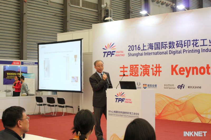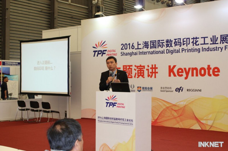 特地從美國飛回來參加TPF的潘云龍博士來自路博潤管理(上海)有限公司,他用國際的視覺,介紹來自路博潤在數(shù)碼印花中使用預處理液的選擇問題,并且展示了美國母公司最高新技術(shù)。