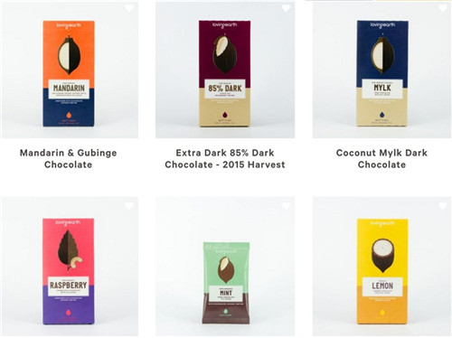 簡(jiǎn)潔是 Loving Earth 巧克力包裝的關(guān)鍵詞,從字體到設(shè)計(jì)到整個(gè)包裝都很簡(jiǎn)單,兩種配色打底,字體印于中部的留白部分,包裝上方印著或是切開(kāi)或是剝開(kāi)或是完整的可可豆,就是全部設(shè)計(jì)了。