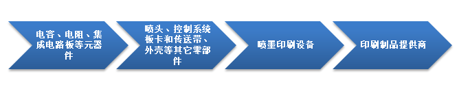 噴墨印刷設(shè)備是采用噴墨印刷技術(shù),由計(jì)算機(jī)控制實(shí)現(xiàn)圖文信息印刷的設(shè)備。在噴墨設(shè)備的產(chǎn)業(yè)鏈上,噴墨設(shè)備處于產(chǎn)業(yè)鏈的中上游,本行業(yè)的上游主要為噴頭、控制系統(tǒng)板卡和傳送帶、外殼等其它零部件制造商,下游是采購(gòu)印刷設(shè)備提供印刷服務(wù)和生產(chǎn)需印刷產(chǎn)品的商家。