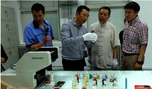 印刷技師展示顏料配色實驗過程