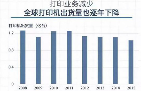 無(wú)紙化辦公本就不是一個(gè)新鮮事,甚至這個(gè)概念出現(xiàn)的時(shí)間比我們想的還要早。在40年前,就已經(jīng)開(kāi)始在談“無(wú)紙化辦公”,1975年《商業(yè)周刊》發(fā)布的一篇文章就預(yù)言:紙張會(huì)在1980年代衰敗,在1990年代消亡。在辦公打印背后,是一門(mén)關(guān)系到硬件、耗材以及紙張的大生意,受到最直接沖擊的勢(shì)必是激光打印機(jī)和耗材市場(chǎng)。在佳能2016年第一季度財(cái)報(bào)中就明確表示了激光打印機(jī)的銷(xiāo)售量低迷,加之受到日元匯率影響,辦公產(chǎn)品業(yè)務(wù)領(lǐng)域營(yíng)業(yè)額同比下降14.1%,這不是個(gè)小數(shù)字。