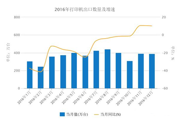 以下為2016年我國(guó)打印機(jī)出口數(shù)量統(tǒng)計(jì):