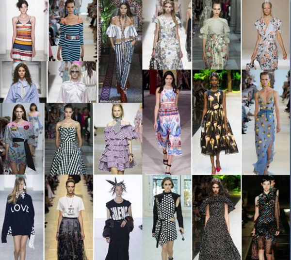 DTG(Direct to Garment),在成衣上直接印花的新型技術(shù)近年來在時尚界得到了廣泛應用?;仡櫳弦患荆?017 春夏)的主要紡織印花元素,主要包括:多彩條紋、時尚睡衣風、花卉藝術(shù)、格子條紋、流行文化標語、趣味波點、動物紋理、經(jīng)典黑白條紋、幾何拼接、水彩藝術(shù)、迷彩和視幻覺。