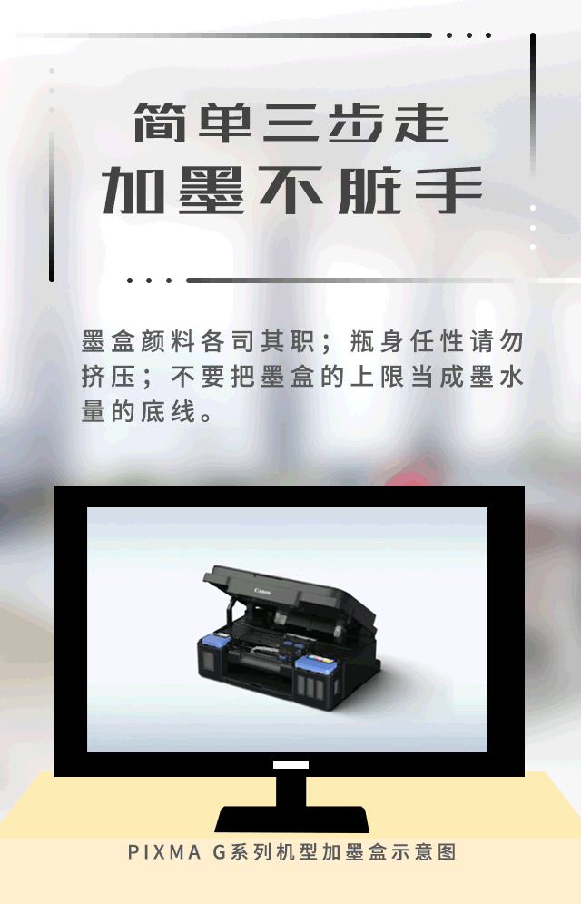 本期的主角是加墨式高容量一體機PIXMA G系列,我們將從新機的首次使用開始,到后期的換墨、噴頭保養(yǎng)等一系列過程,帶你走上打印界高手的修煉之路。