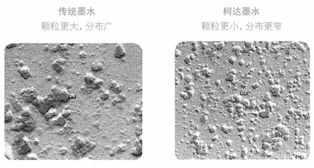 要獲得最高圖文質(zhì)量,除了精確的墨滴生成和選擇,還需要有柯達專利的微研磨顏料墨。這些創(chuàng)新的顏料墨為納米級的粒子,相對傳統(tǒng)顏料墨,其墨水分布更加穩(wěn)定、狹窄(請見圖5)。環(huán)保型水性墨水往往使用這些納米顏料,所生成的色域也比膠印油墨更大,這是通過墨水的透明度實現(xiàn)的—— 允許光穿過墨水層從承印物上反射。此外,柯達顏料墨在承印物上具備極高的持久性,如防水、防褪色,即使幾十年后依然能有效抵擋陽光的侵蝕。
