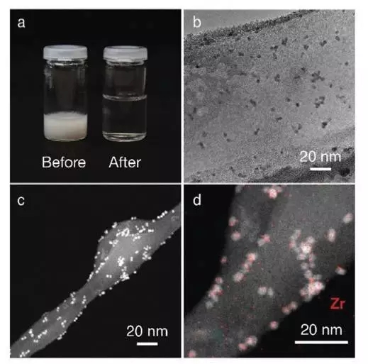 酸性處理前后Eu摻雜的ZrO2納米顆粒的照片(©RSC)