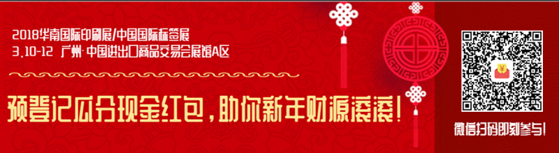 2018華南國際印刷展/中國國際標簽展即將進入開展倒計時,為了增加春節(jié)團圓喜氣,主辦方為印包行業(yè)觀眾送上現(xiàn)金紅包大禮。2018年2月2日-3月4日之間,凡通過微信公眾號“華南印刷標簽展”預登記成功的觀眾通過主辦方審核之后,即可領取新年紅包一個,也可直接掃描以上圖片中二維碼30秒完成預登記,3月10至12日琶洲A區(qū)等您來!