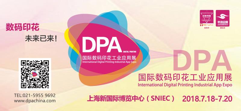 2018DPA國際數(shù)碼印花工業(yè)應(yīng)用展(簡稱DPA 2018)將于2018年7月18-20日,于上海新國際博覽中心隆重舉行。