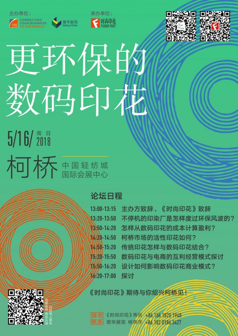 “世界紡織看中國(guó),中國(guó)紡織在柯橋”,柯橋作為中國(guó)紡織重鎮(zhèn),擁有著來(lái)自全國(guó)的紡織人群人流量,經(jīng)歷了2017年環(huán)保洗禮的柯橋在2018也將迎來(lái)更多更新的市場(chǎng),無(wú)論是“熱升華市場(chǎng)成本的價(jià)格戰(zhàn)”還是“活性市場(chǎng)的崛起”,無(wú)論“環(huán)保會(huì)否再掀風(fēng)波”還是“高速時(shí)代是否占領(lǐng)柯橋”,柯橋注定不會(huì)平靜,2018中國(guó)柯橋國(guó)際紡織品印花工業(yè)展覽會(huì)攜手《時(shí)尚印花》,將“更環(huán)保的數(shù)碼印花”開(kāi)在柯橋,再去往世界。