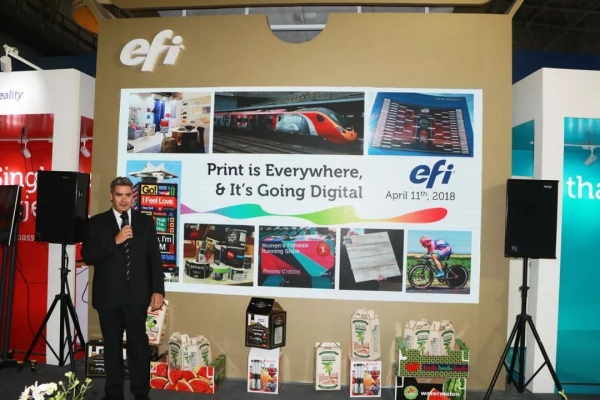 4月11日,2018華南國(guó)際瓦楞展的第二日,廣東現(xiàn)代展覽中心依然是人流不減,位于3號(hào)展館的EFI展位更是人聲鼎沸。一場(chǎng)關(guān)于EFI的全領(lǐng)域解決方案的新聞發(fā)布會(huì)正在炫酷上演。EFI工業(yè)印刷業(yè)務(wù)部副總裁/總經(jīng)理José Luis Ramón Moreno先生帶來(lái)了關(guān)于EFI的全方位介紹。