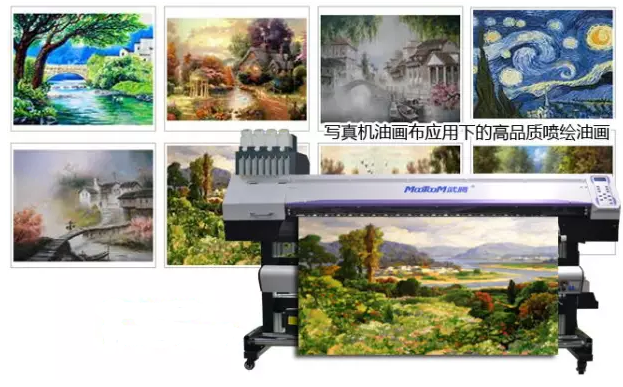 噴繪油畫具有很強(qiáng)的裝飾性和獨(dú)特的藝術(shù)魅力,高精度多功能寫真機(jī)的應(yīng)用下,讓數(shù)碼噴繪仿真手工油畫更簡單便捷。