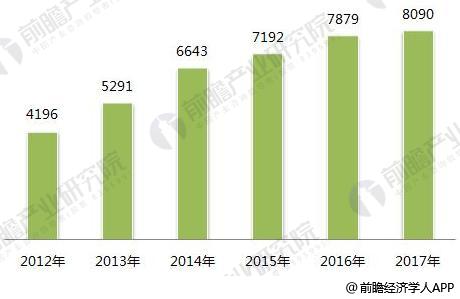 2012-2017年印刷行業(yè)主營業(yè)務(wù)收入規(guī)模(單位:億元)