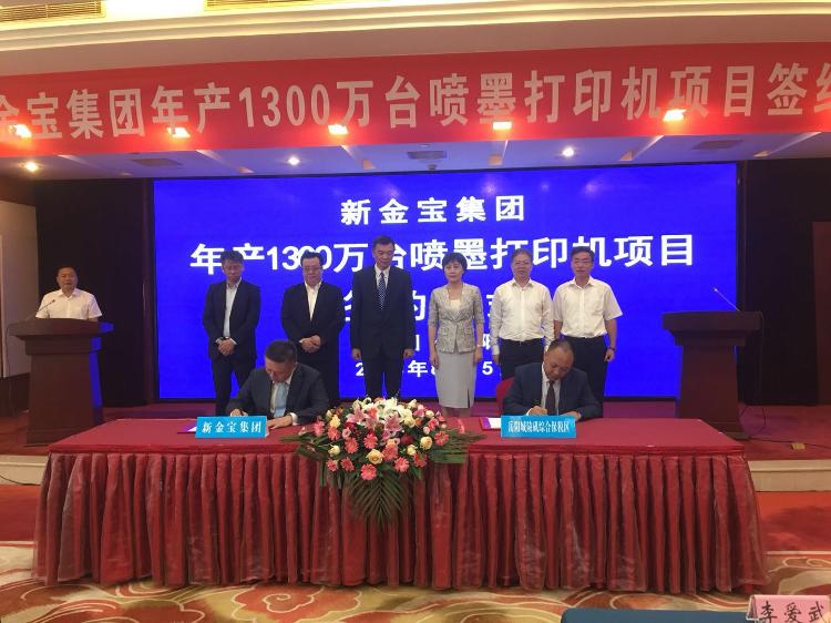 新金寶集團(tuán)是世界500強(qiáng)技術(shù)型企業(yè),是全球電子信息領(lǐng)域最具行業(yè)影響力、市場(chǎng)競(jìng)爭(zhēng)力以及產(chǎn)業(yè)帶動(dòng)力的知名領(lǐng)軍企業(yè)之一。年產(chǎn)1300萬臺(tái)噴墨打印機(jī)項(xiàng)目的成功落戶,將新增勞動(dòng)就業(yè)2萬人,新增進(jìn)出口貿(mào)易額20億美元,實(shí)現(xiàn)綜合總產(chǎn)值300億元以上,帶動(dòng)效益巨大、發(fā)展前景廣闊。同時(shí),項(xiàng)目將吸引大量國(guó)際國(guó)內(nèi)知名上下游配套企業(yè)和代工產(chǎn)品,迅速形成產(chǎn)業(yè)集聚,打造千億級(jí)的電子信息產(chǎn)業(yè),全面提升我市的國(guó)際知名度、美譽(yù)度和經(jīng)濟(jì)外向度。
