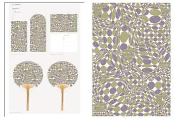 金獎作品《珠圓玉潤》的設計師利用金屬專色色板顏色使作品傳達出在時光流溢中,時節(jié)的美好與圓滿。獲獎作品的創(chuàng)作時間恰逢2019己亥豬年,設計師利用Iridesse™強大的紙張?zhí)幚砟芰Γ瑢⒆髌芬约t包、明信片以及團扇的形式呈現(xiàn),更充分表達出作者期望生活越來越美好的寓意與期盼。