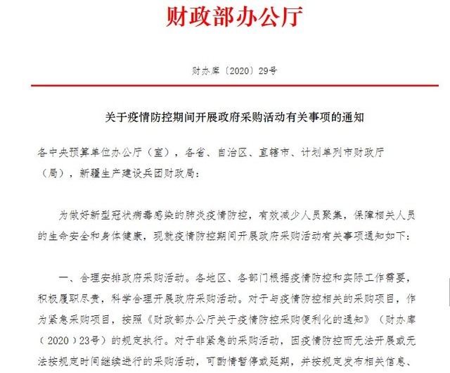 財政部發(fā)文優(yōu)先保障與疫情防控相關(guān)的采購項目