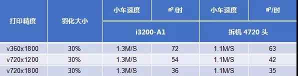 由上表可以看出,在墨滴大小一致的情況下,I3200-A1的點火頻率在三點的時候要高出4.9kHZ,也就是說在點火頻率上面來看I3200-A1比4720噴頭高出29.34%;