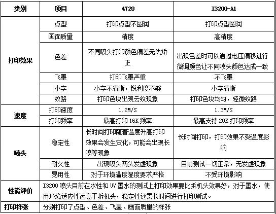 總體而言,二者的最大區(qū)別體現(xiàn)在應對的使用場景不同。但由于愛普生I3200-A1采用了最新技術,且加入更多的控制單元,并同時能夠得到愛普生本部的技術支持,故此在各方面均優(yōu)于原4720拆機頭的表現(xiàn)。