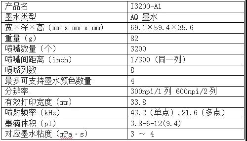 愛普生I3200-A1噴頭參數(shù):