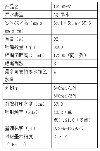 愛普生I3200-A1噴頭參數(shù):