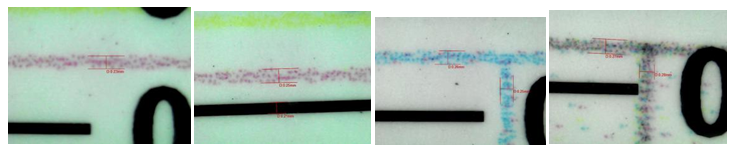 經(jīng)過(guò)以上觀察測(cè)量發(fā)現(xiàn)其線條跳動(dòng)橫向?yàn)?.03~0.05mm,縱向線跳動(dòng)為:0.06~0.08mm,此時(shí)線寬為0.25~0.28mm,原文件標(biāo)準(zhǔn)線寬為0.25mm??傮w來(lái)說(shuō)線跳動(dòng)算是比較中規(guī)中矩,但是仍然有提升的空間。