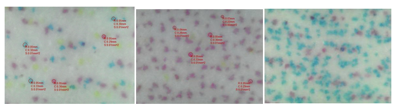 如上圖經(jīng)測(cè)量以點(diǎn)徑0.05mm為主,放大500倍。有少量0.03mm、0.04mm的墨點(diǎn)。整體墨點(diǎn)穩(wěn)定,但是墨點(diǎn)圓度有待提升。