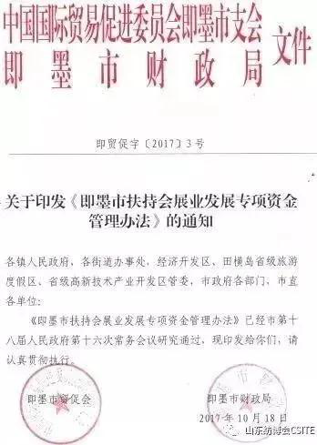 即墨政府針對(duì)參展企業(yè)出臺(tái)的《補(bǔ)貼政策》