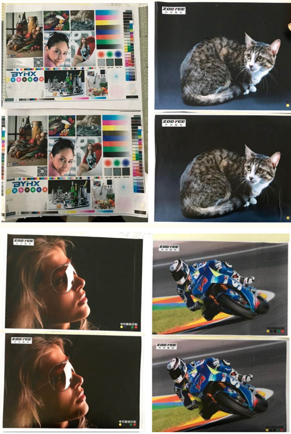 對(duì)于畫(huà)質(zhì)而言,我們單純從技術(shù)角度去分析其影響因素的墨水粘度、表面張力、點(diǎn)火頻率、墨滴體積、紊流、電磁干擾等等其實(shí)對(duì)于實(shí)際的畫(huà)質(zhì)表現(xiàn)的意義沒(méi)有我們想象中重大,固然這些是重要的數(shù)據(jù)。這些數(shù)據(jù)都是動(dòng)態(tài)的。而我們最終需要的是優(yōu)秀的畫(huà)質(zhì)。只有優(yōu)秀的畫(huà)質(zhì)才是客戶(hù)所需要的。故此我們選擇以下畫(huà)面不斷重復(fù),長(zhǎng)時(shí)間重復(fù),以考驗(yàn)其重復(fù)再現(xiàn)能力。結(jié)果顯而易見(jiàn),不考慮拍照角度的原因,我們實(shí)際看到的畫(huà)質(zhì)重復(fù)一致性是非常高的。