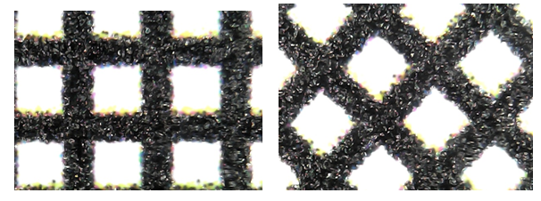 網(wǎng)格圖形中心點(diǎn)放大500倍對比,紋路整齊,線條勾邊精準(zhǔn),無斷墨,稍有飛墨。