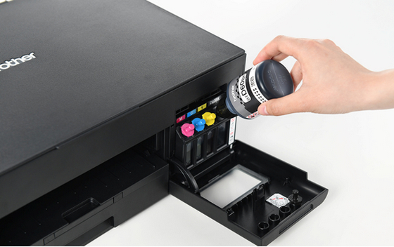 “隨印”系列采取節(jié)省空間的內(nèi)置墨倉(cāng)設(shè)計(jì),便于將墨水瓶嘴塞進(jìn)注墨口,無(wú)需擠壓,即可完成自動(dòng)加墨,非常輕松便捷。大容量的黑色墨水印量約為7,500頁(yè),青色、品紅色、黃色墨水各能打印約5,000頁(yè),幫助節(jié)省成本。