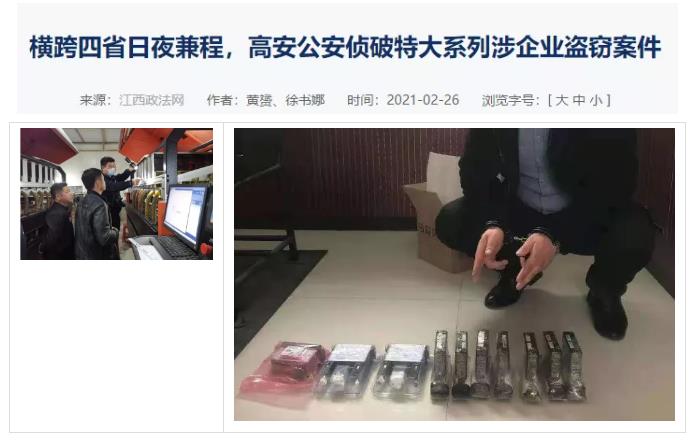 某陶瓷企業(yè),被犯罪團(tuán)伙偷走了27個(gè)噴頭,直接經(jīng)濟(jì)損失超50余萬(wàn)元,目前,犯罪嫌疑人徐某、余某等9人已被公安機(jī)關(guān)依法刑事拘留。(信息來(lái)源江西政法網(wǎng))